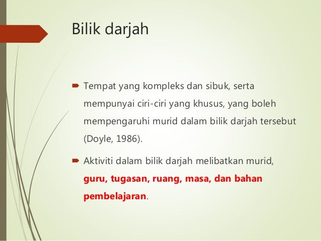 . Hasil Pembelajaran Setelah selesai membaca bab ini diharap anda dapat. Ia juga menekankan tenteng pentingnya penyusunan suasana bilik darjah bagi meningkatkan keberkesanan pemantauan perkembangan pelajar serta tanggungjawab guru. Doyle 1986 telah mengenal pasti beberapa ciri yang menjadikan bilik darjah suatu tempat yang unik dan mencabar antaranya ialah.