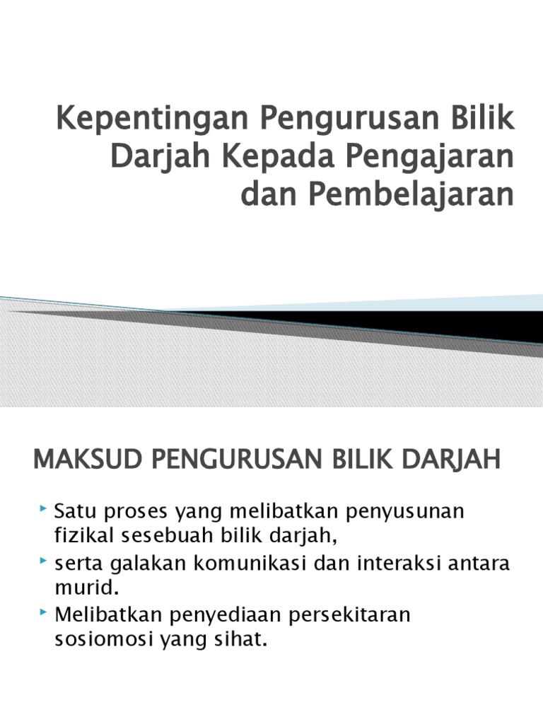 Murid akan belajar apabila mereka mempraktikkan perkara yang di ajar dan apabila mereka mempunyai kemahiran berfikir yang baik. View pdfslidetips_kepentingan-pengurusan-bilik-darjah-kepada-pengajaran-dan-pembelajaranpptx from SEKOLAH DA KPS 3014 at Sultan Idris University of Education. Persekitaran bilik darjah yang sesuai untuk pembelajaran akan menyebabkan masalah gangguan tingkahlaku pelajar dapat diminimakan.